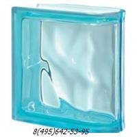 Стеклоблок окрашенный в массе Торцевой "Волна" голубой
